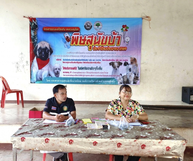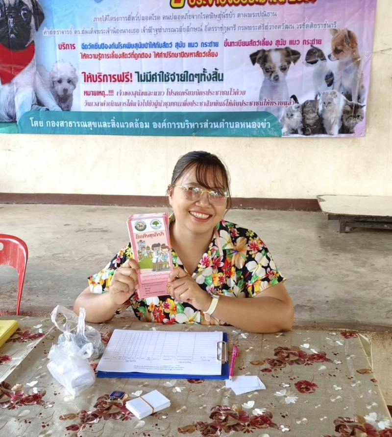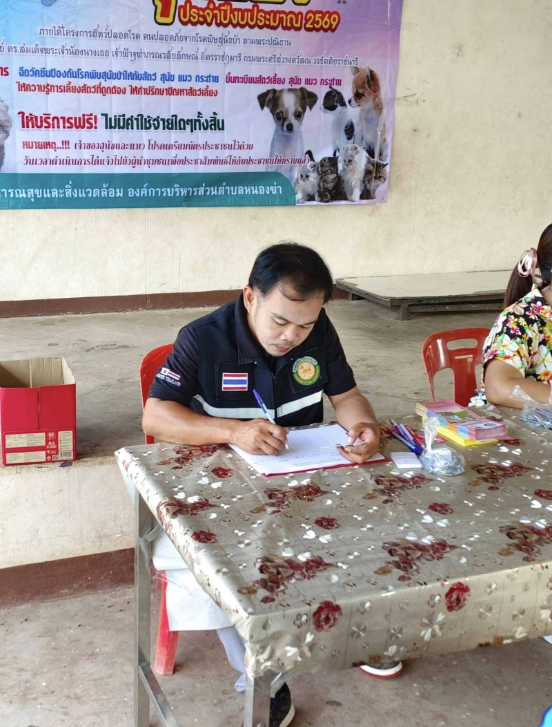 นายวัชรินทร์ ทองคนทา นายกองค์การบริหารส่วนตำบลหนองข่า มอบหมายให้ กองสาธารณสุขและสิ่งแวดล้อม ออกดำเนินโครงการรณรงค์ป้องกันและควบคุมโรคพิษสุนัขบ้า ภายใต้โครงการ สัตว์ปลอดโรค คนปลอดภัย จากโรคพิษสุนัขบ้า ตามพระปณิธานศาสตราจารย์ ดร.สมเด็จเจ้าฟ้าฯ กรมพระศรีสวางควัฒนวรขัตติยราชนารี ประจำปีงบประมาณ 2569 เวลา 08:30 น. - 15:30 น. นำโดย นางสาววิมลศรี แก้วขวาน้อย ผอ.กองสาธารณสุขและสิ่งแวดล้อม ได้นำทีมงานออกหน่วยบริการฉีดวัคซีนป้องกันโรคพิษสุนัขบ้า ที่ศาลาประชาคม บ้านหนองโสน หมู่ที่ 11 ต.หนองข่า อ.เกษตรสมบูรณ์ จ.ชัยภูมิ โดยสุนัขที่ได้รับวัคซีน จำนวน 30 ตัว แมวที่ได้รับวัคซีน จำนวน 18 ตัว รวมทั้งสิ้น 48 ตัว เพื่อเป็นการป้องกันการแพร่ระบาดของโรคพิษสุนัขบ้าในช่วงฤดูร้อน